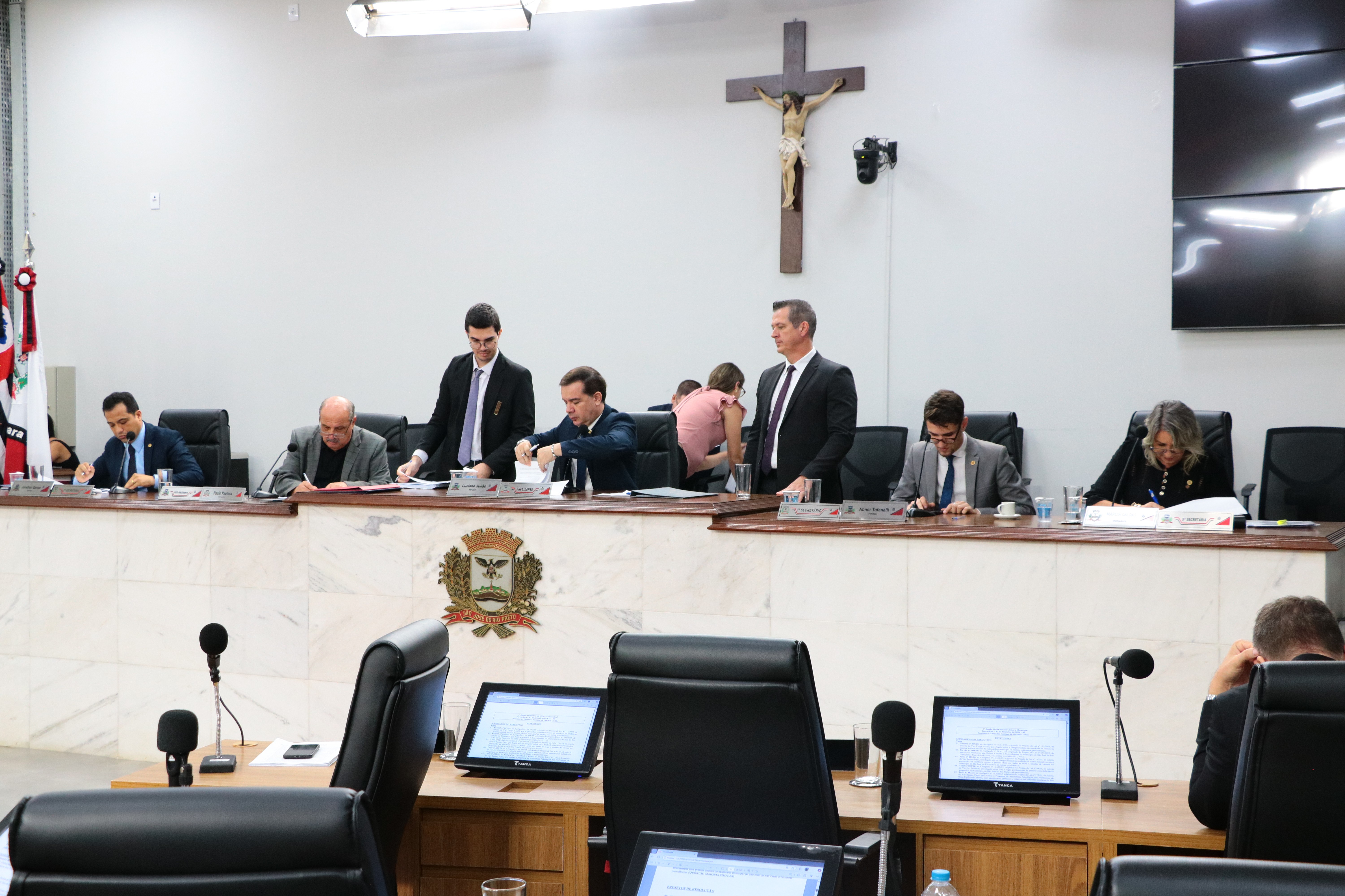 Os vereadores de São José do Rio Preto aprovaram na 1ª sessão ordinária de 2025 um projeto de resolução, um projeto de lei complementar e seis projetos de lei, além de rejeitarem o veto que estava na pauta. Um projeto de resolução teve a votação adiada.